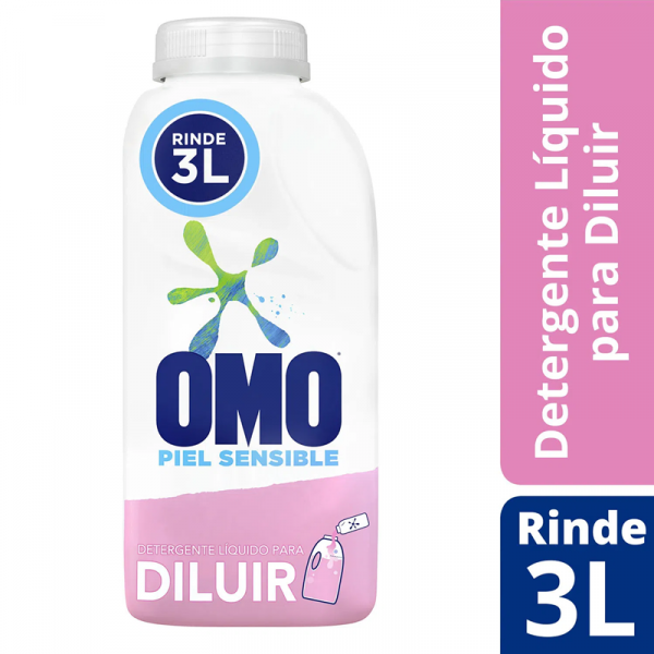 OMO Piel Sensible para diluir cuida tu piel con la misma calidad de siempre mientras ahorras con su nueva tecnología. OMO Piel Sensible es un detergente hipoalergénico, testeado dermatológicamente, para la ropa y piel delicada de tu bebé y tu familia. Puedes prepararlo en 3 simples pasos: Agregas 2.5Lt de agua, agregas OMO Piel Sensible para diluir 500ml, agitas y ¡LISTO! Tu OMO Piel Sensible con la misma performance, calidad y cuidado de siempre.